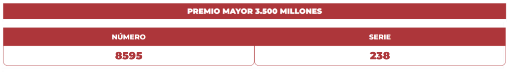El numero ganador es el 8595 pero los premios se reparten de la siguiente manera: